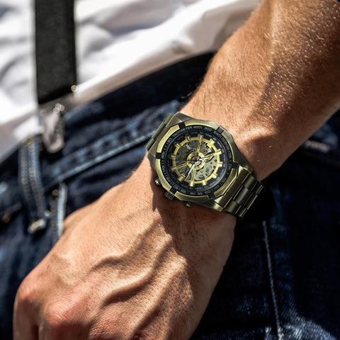 WINNER Classic Skeleton Automatic Mechanical Gold Watch for Men Luminous TM340