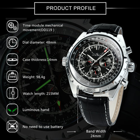 JARAGAR Military Sports Automatic Mechanical Watch for Men Multifunction Dial Luminous Pilot Watches 040