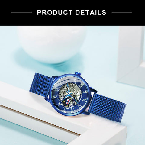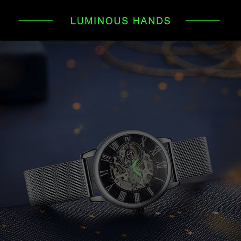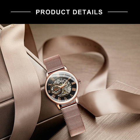 Forsining Fashion Elegant Rose Gold Mechanical Watch for Men Mesh Stainless Steel Strap Luxury Ladies Watches