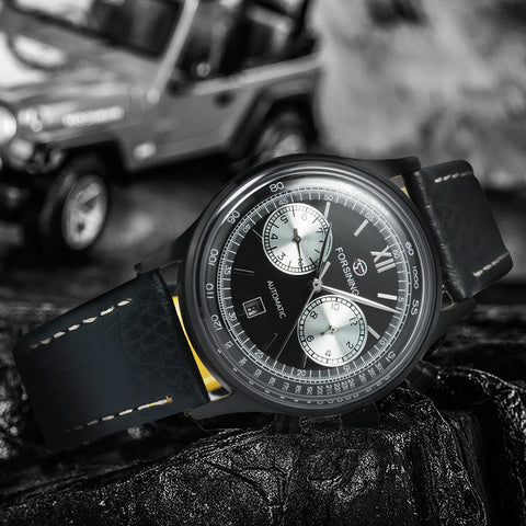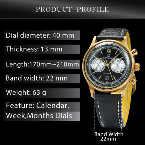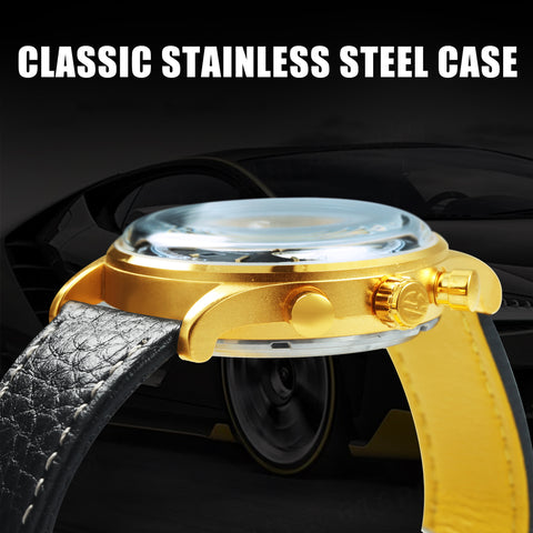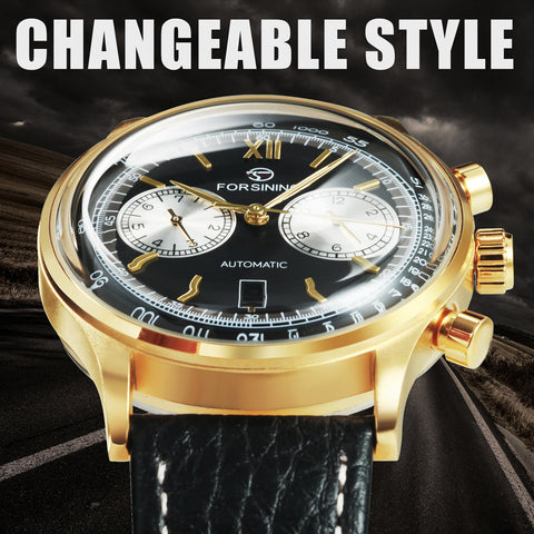 Forsining Vintage Classic Concave Glass Automatic Mechanical Mens Watches Genuine Leather Strap 124